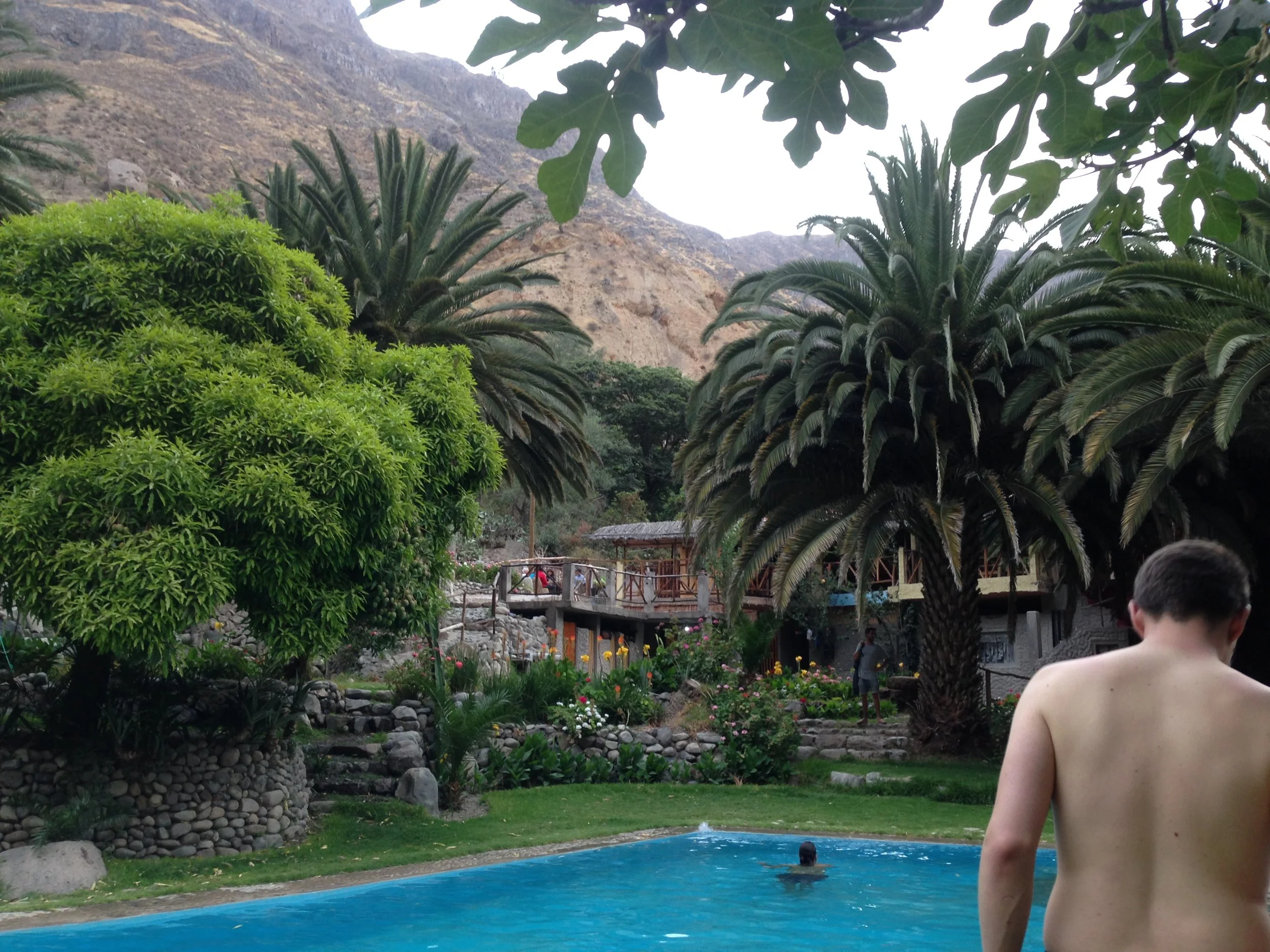 I must admit, reaching the oasis was incredibly surreal. “Oasis” is a word that promises so much! And it fulfilled all expectations. A beautiful place with palm trees to rest in hammocks, and wooden cabins, light and airy, in a tropical microclimate. What a wonder — how small I felt among these mountains.